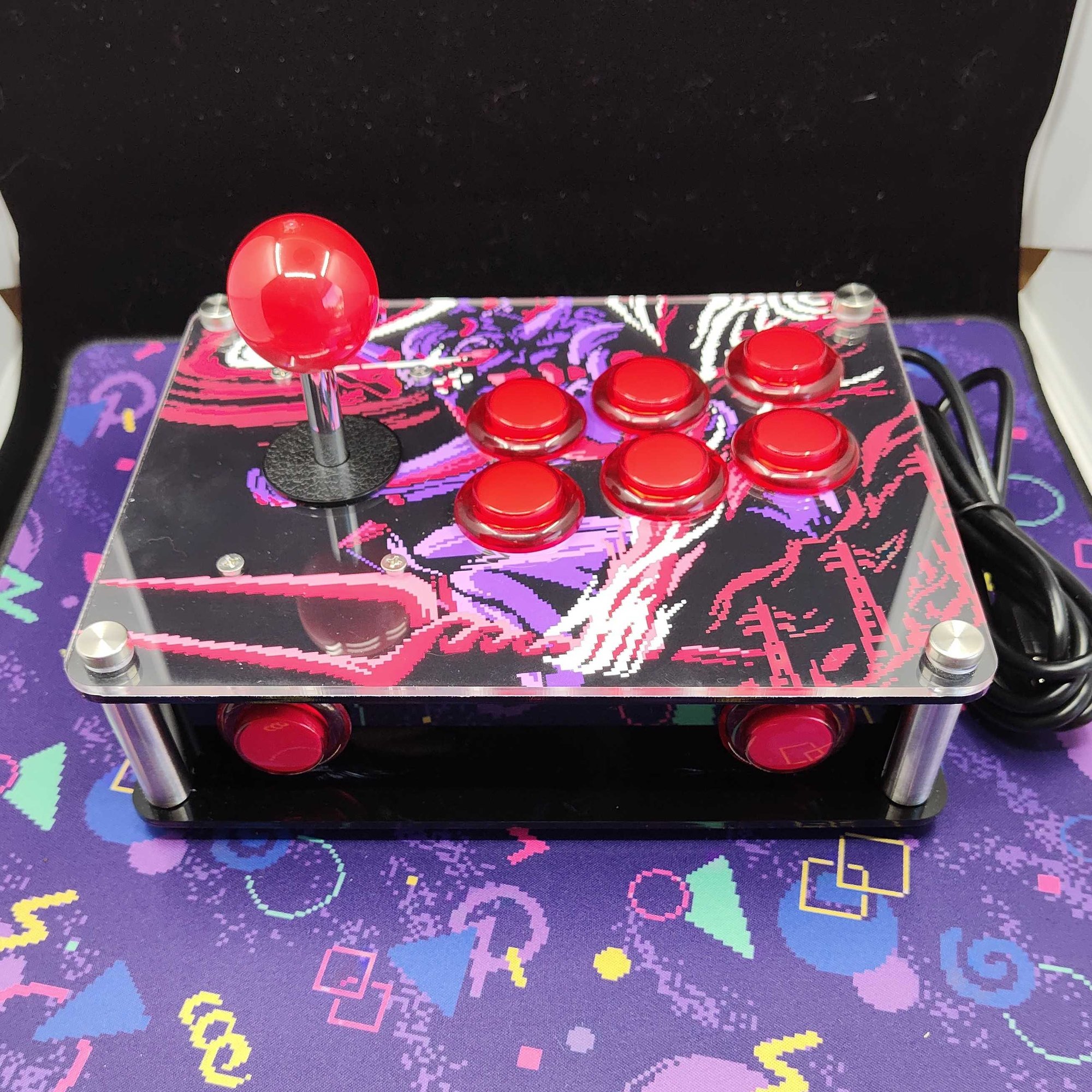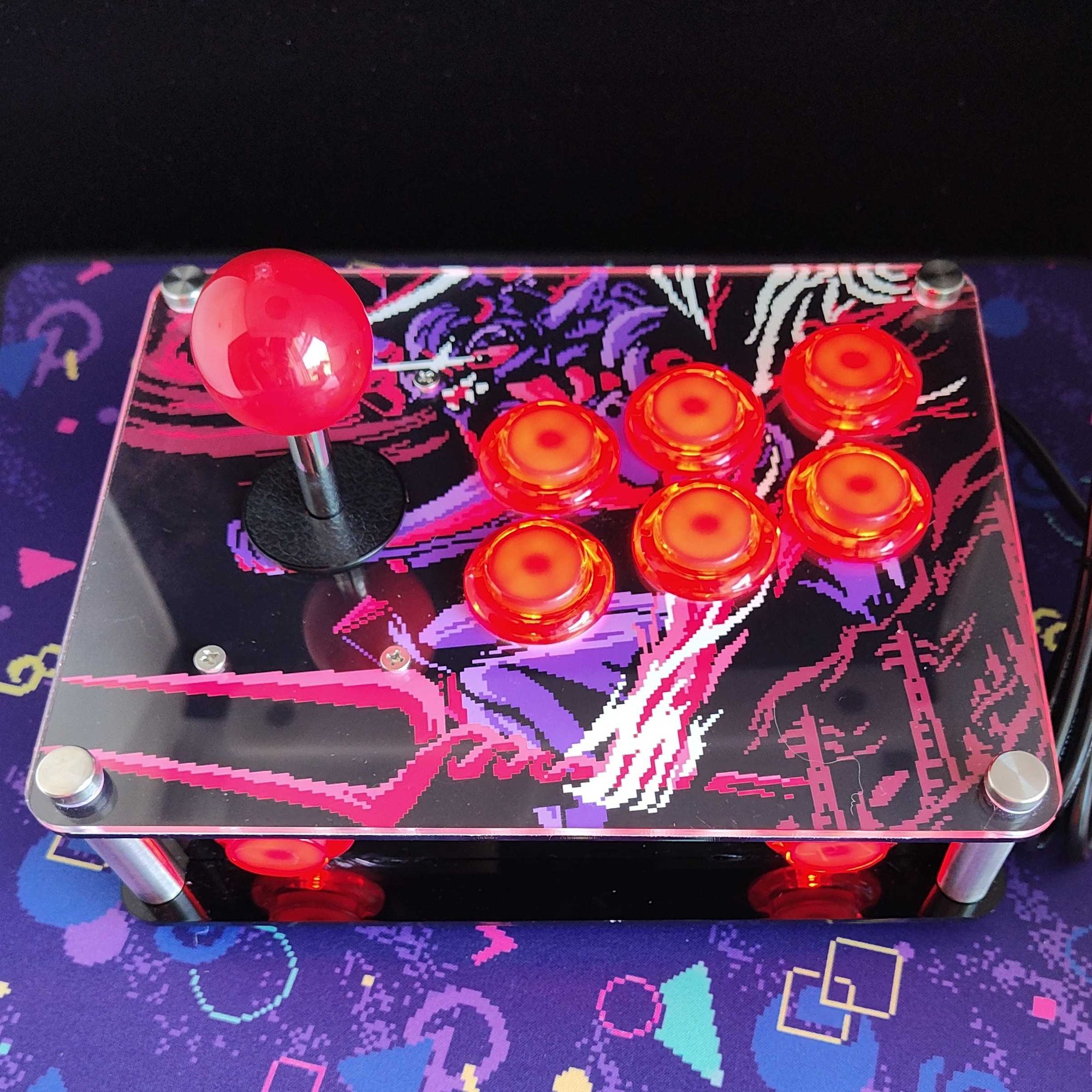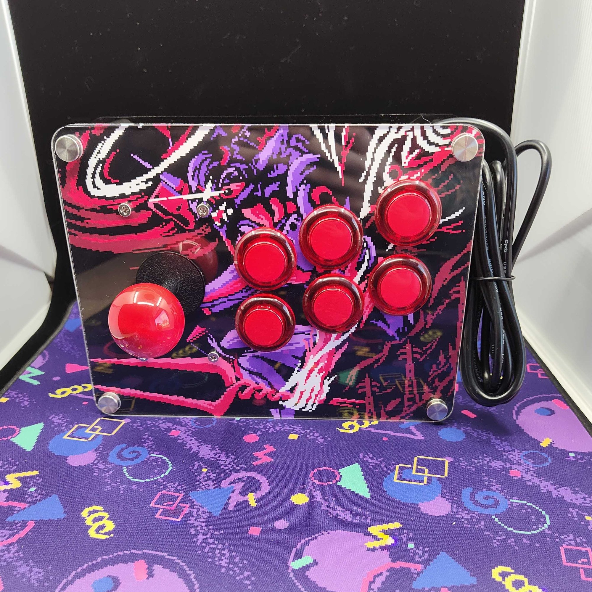 Hand-made and custom built start to finish, these PC-Compatible arcade sticks are fully working and clicky for the tactile players. Each stick is cut out of acrylic with a laser cut and assembled by Astra personally.