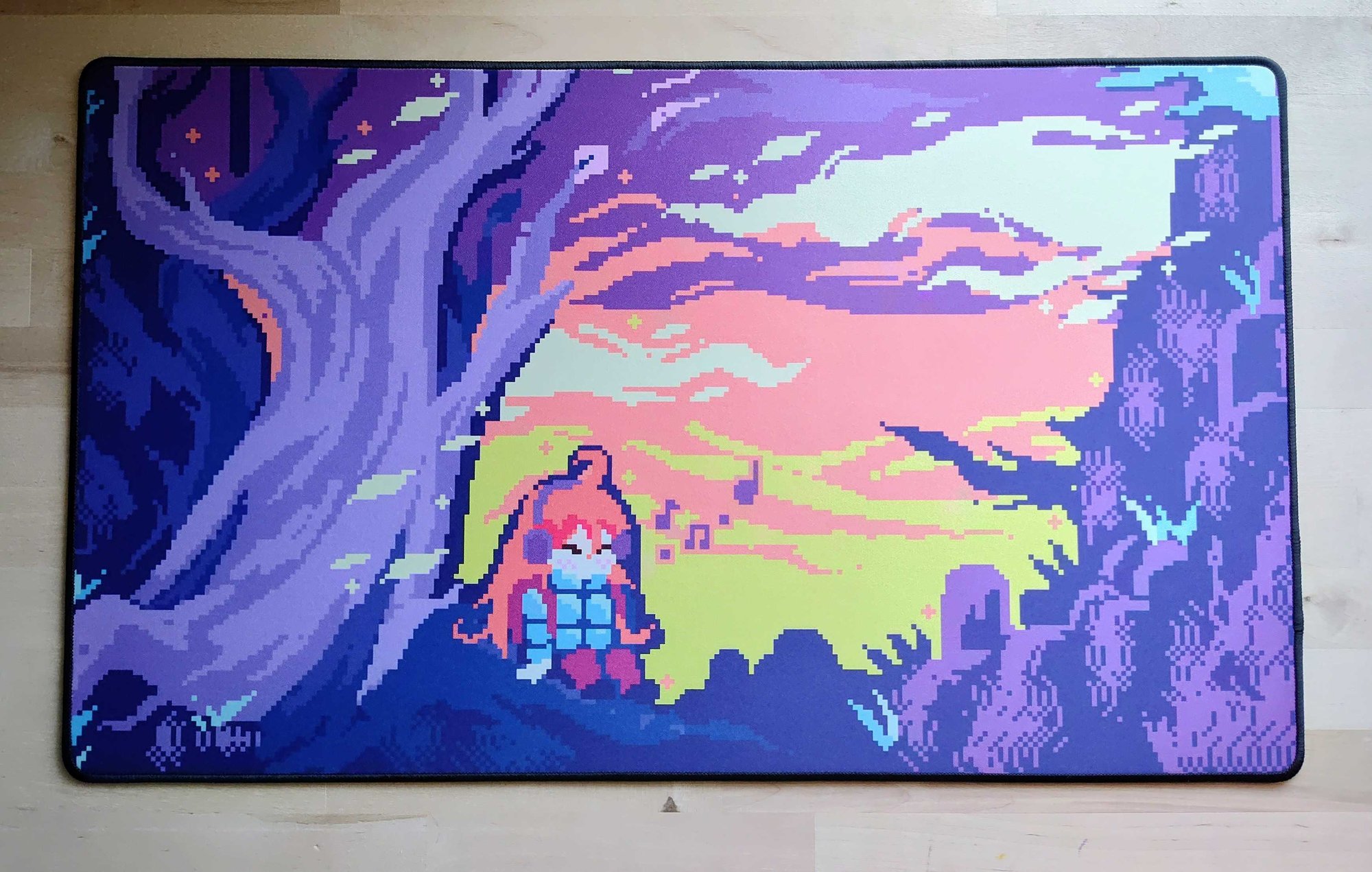 Playmats measure 24x14in and feature stitched black edging and rubber backing to prevent slippage.