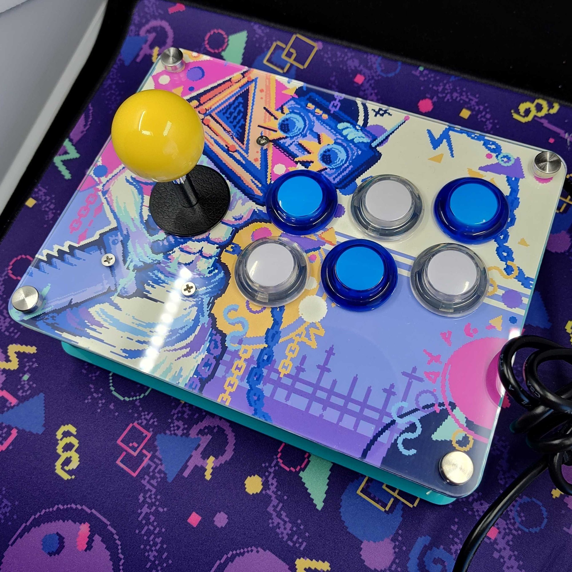 Hand-made and custom built start to finish, these PC-Compatible arcade sticks are fully working and clicky for the tactile players. Each stick is cut out of acrylic with a laser cut and assembled by Astra personally.