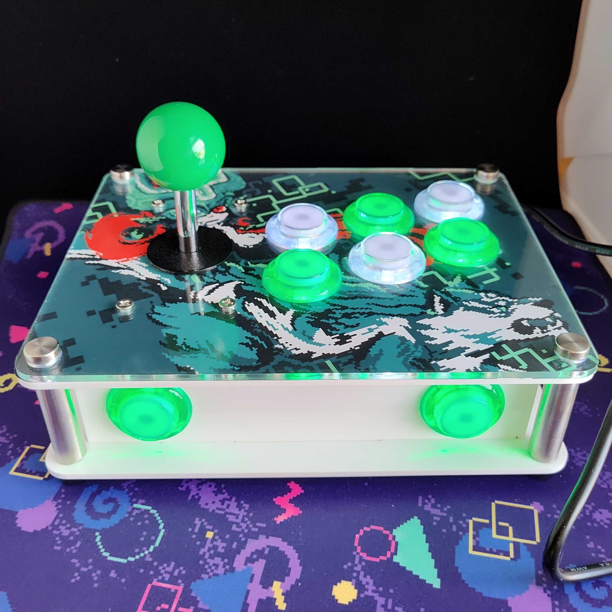 Hand-made and custom built start to finish, these PC-Compatible arcade sticks are fully working and clicky for the tactile players. Each stick is cut out of acrylic with a laser cut and assembled by Astra personally.