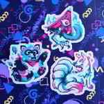 A set of 3.5in vinyl coated stickers of a handful of yokai collectable sprites